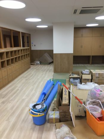床は子供達が転んでもケガをしないよう、柔らかい素材の物を使用しています。